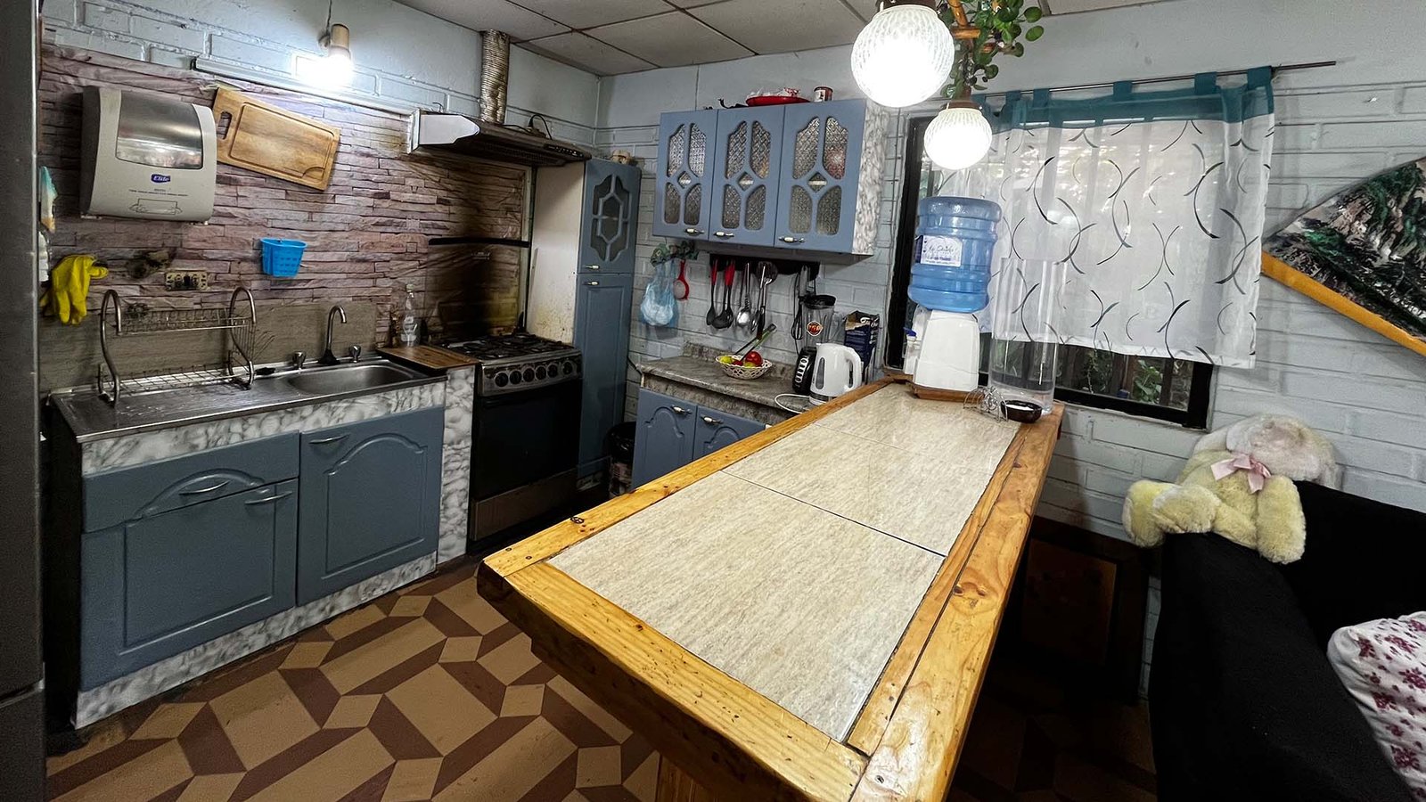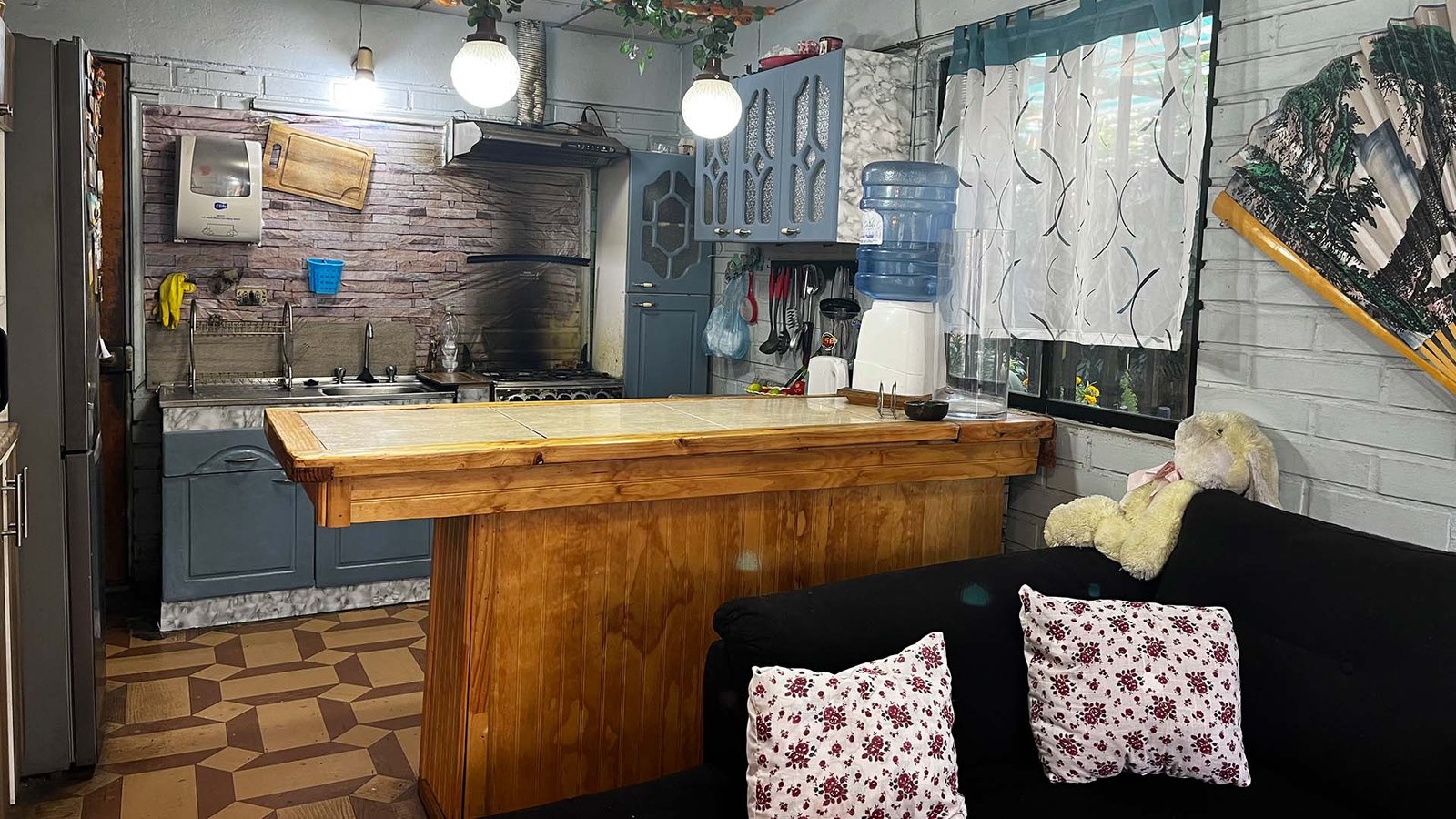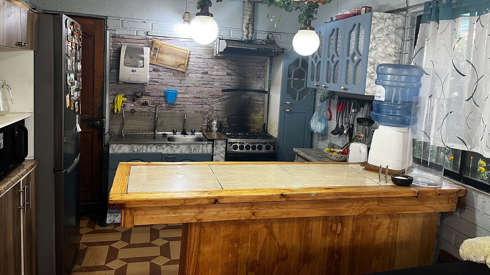 • Cocina americana amoblada, piso cerámico